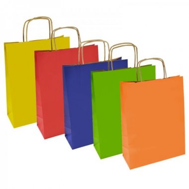 Pakiet 25 szt. papierowych toreb ECO kolorowych, z uchwytem ze skręconego papieru.